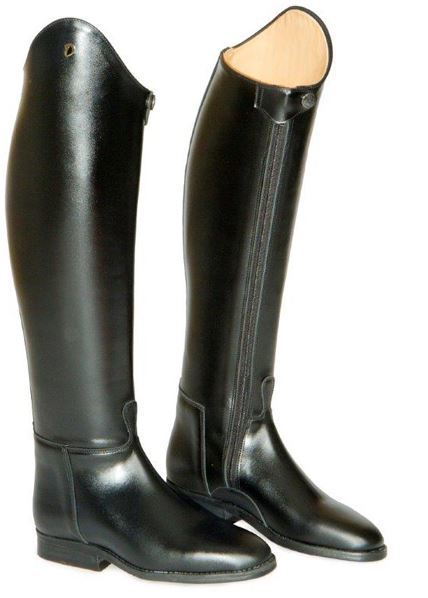 A beautiful boot for showing or dressage which is identical in style to the Prestige, but is in a slightly softer leather and does not have a stiffened outer leg. Comes standard with 6cm high bow and a flattering inside zip to give your leg a great line. A thin ripple rubber sole is standard or you can choose the wooden look sole for something new. Show your personality by adding contrast customise with trims, patent outer leg ( plain inside leg ) and a hunt collar, toe cap or heel guard.