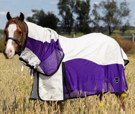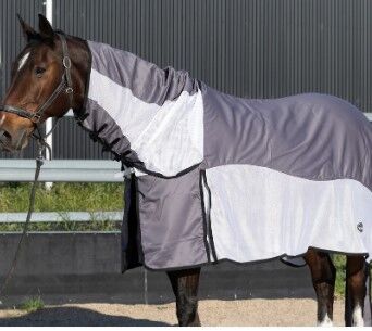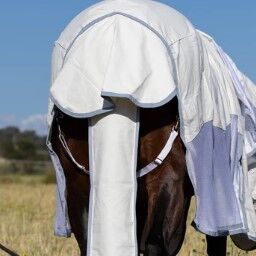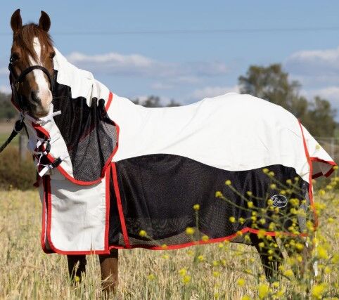 The mesh promotes excellent airflow and breathability and allows heat to escape, and the moisture wicking ripstop fabric pulls moisture away from the horse, so it can regulate its body temperature and stay cool and dry in hot weather. They are also satin lined to protect the mane and shoulders.
