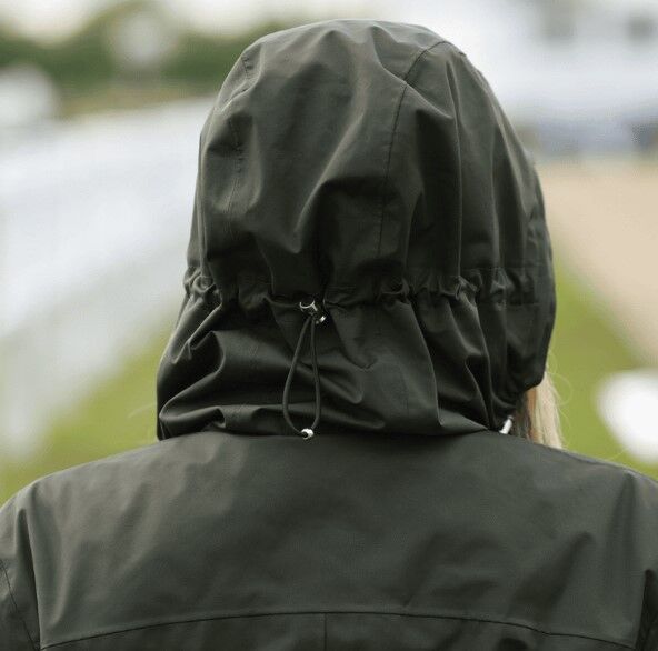 • 15,000mm Waterproof • 15,000 breathable • Stretch fabric • BLUESIGN fabric • Back zip vent with gusset • Reflective trim to gusset • Concealed peak hood • Inner leg straps • Inner storm cuffs • Storm flap • Two-way zip pockets • Two-way central zip • Signature Equetech zip pullers • Quilted lining • Available up to a UK 22 as standard • Machine washable