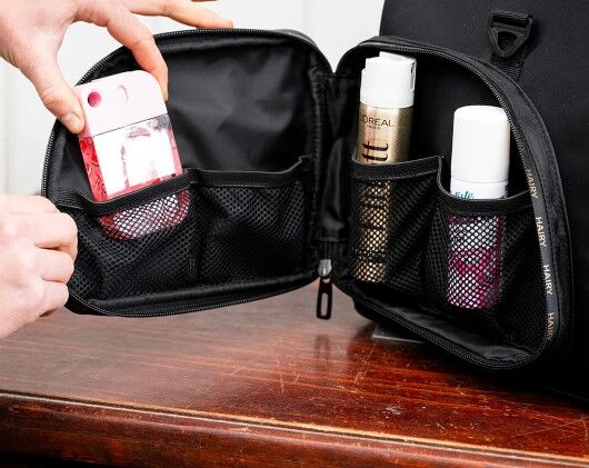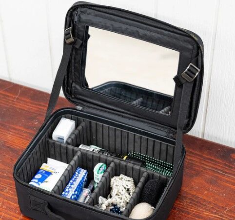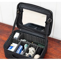 The designated storage case features a built-in mirror, an inner cover with clear pockets, and customisable partitions so you can easily arrange your items exactly how you like them.