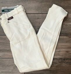 A great fit riding breach with full faux leather seat to the calf and elastic cuffs. Finished with rhinestone buttons on the pockets and made of durable fabric that feels great on, but will last the toughest riding.