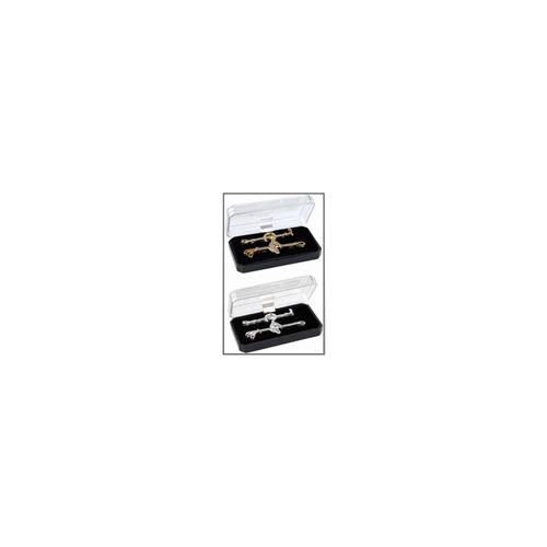 Gorgeous pair of stockpins with horseshoe on cane and horsehead on crop.